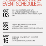 FALL SCHEDULE 2025 Posted on October 1, 2025October 1, 2025 by admin Posted in Readings & Performances, Schedule, Uncategorized.